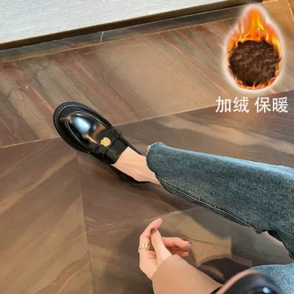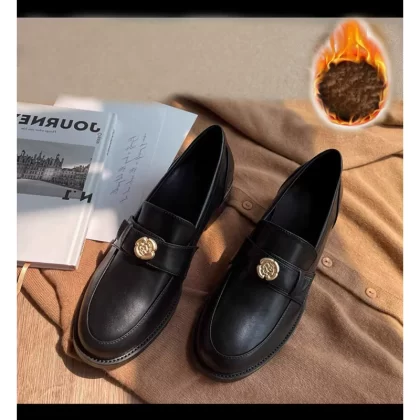 حذاء لوفر صيفي متعدد الاستخدامات من جلد الكاميليا ذو النعل السميك والصغير