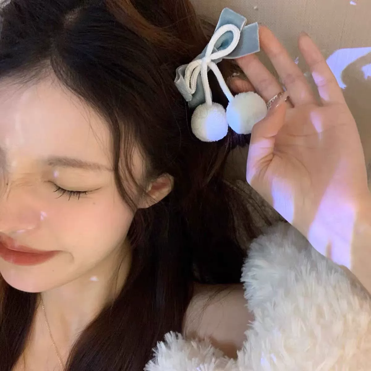 lolita light blue handmade hairpin girl heart hair ball