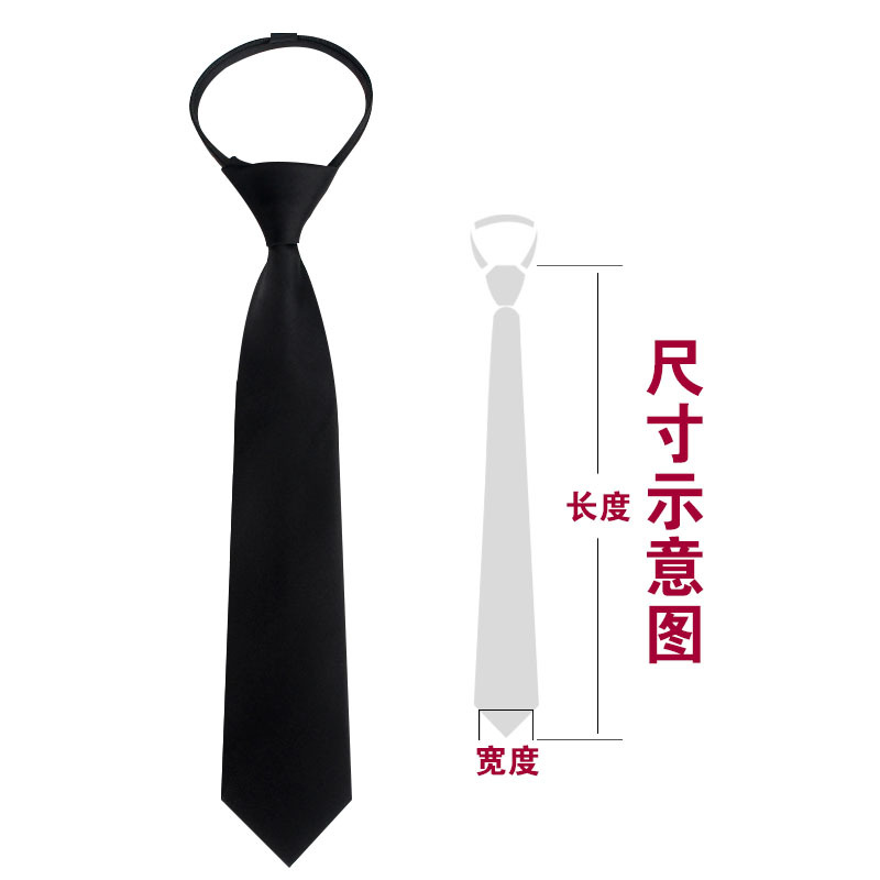 Long and short easy to lazy zipper black men's and women's tie formal wear business casual all-match hand-free black tie