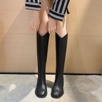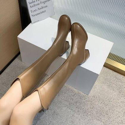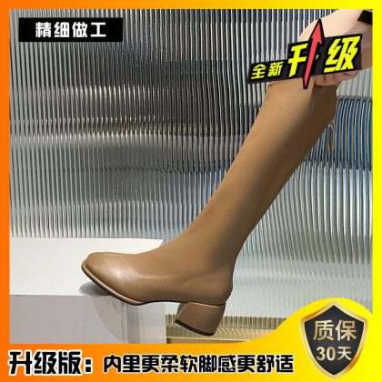 أحذية طويلة أحذية الفرسان النسائية 2023 الربيع والخريف جديد براون صغيرة عالية الكعب حجم كبير أحذية الأطفال