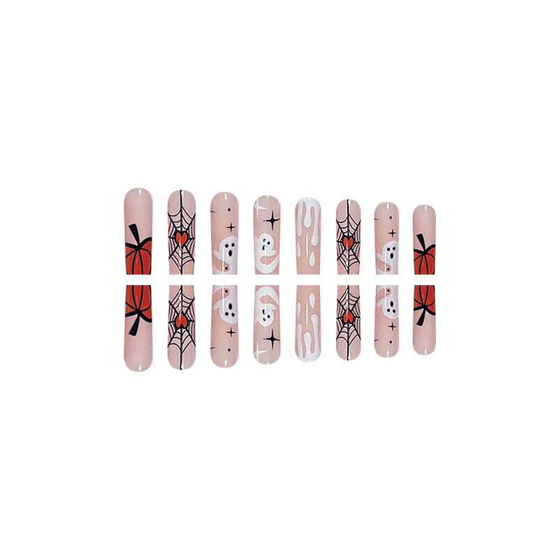 | nameOriginal | Long pink French ghost pumpkin Halloween popular Spider manicure wear nail spider web love fake nails |
