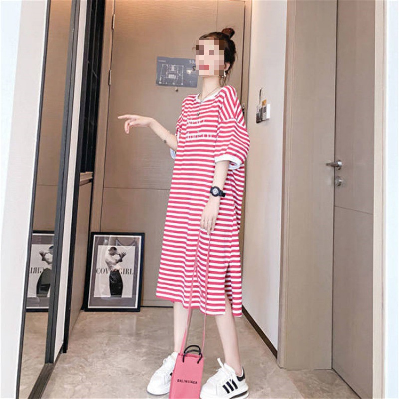 | nameOriginal | Long Skirt Pregnant Women's Skirt Pregnant Women's Summer Large Size Dress Korean Style Loose Pregnant Women's Striped Long T-Shirt Skirt Over Knee Short Sleeve |