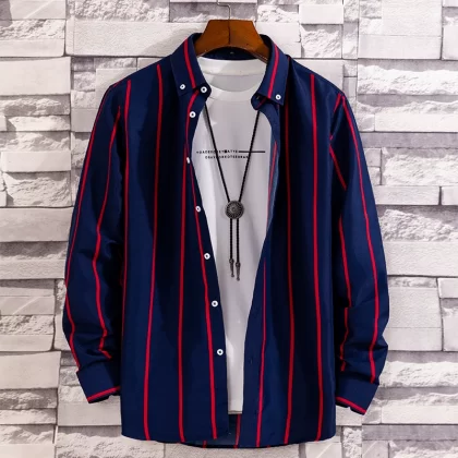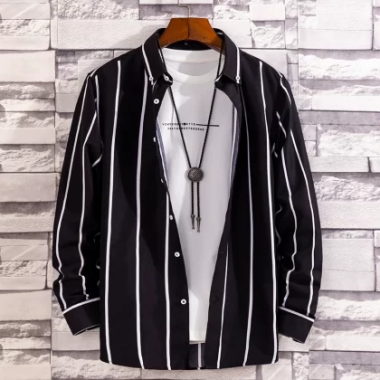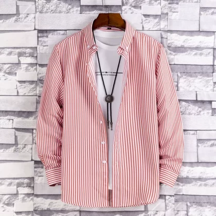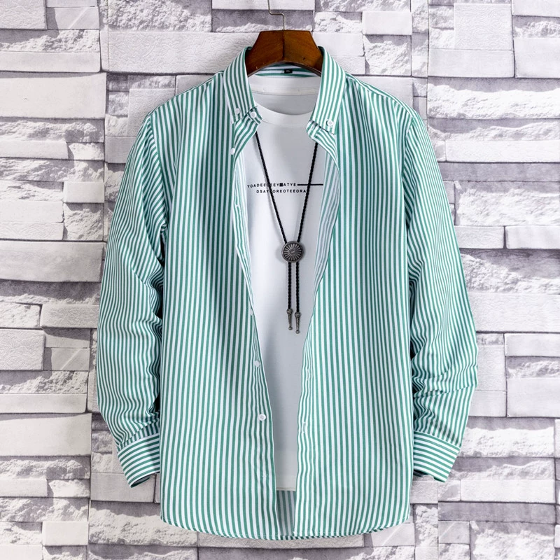 | nameOriginal | Long-sleeved casual green striped Korean style slim shirt |
