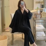 | nameOriginal | Long-sleeved cotton silk pajamas for women, spring and summer thin set, solid color, comfortable and breathable confinement clothes, can be worn outside, home clothes, summer |
