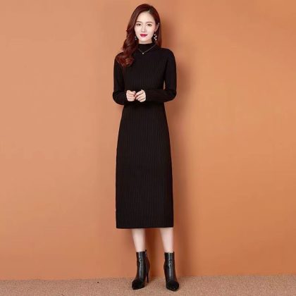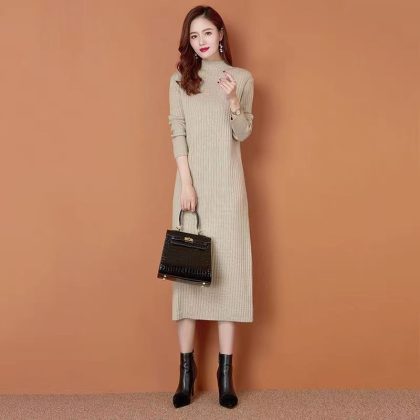 Long-sleeved knitted sweater women's over-the-knee sweater dress women's long new winter with overcoat inner wear dress
