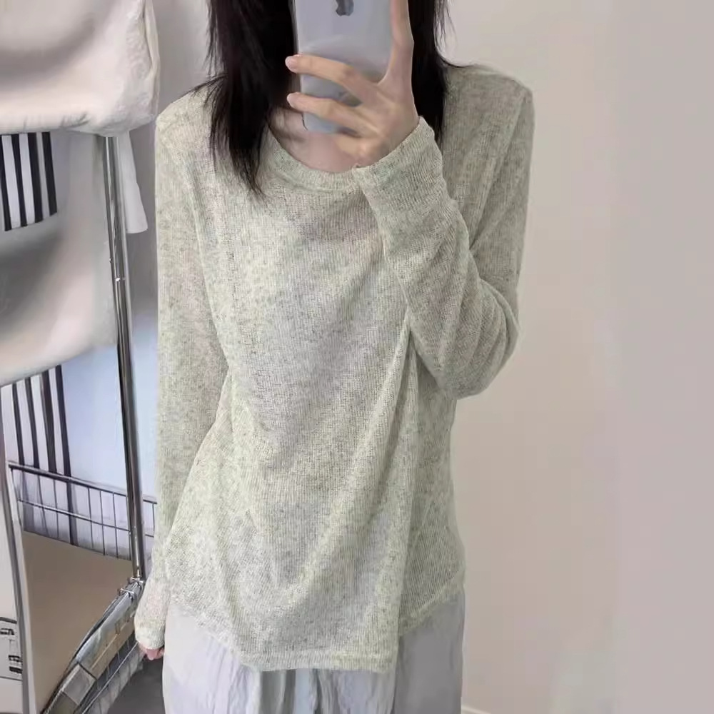 Long-sleeved T-shirt Women's Spring and Summer Thin Soft Waxy Inner Base Shirt Loose Lazy Style Niche Design Sense Top Trendy