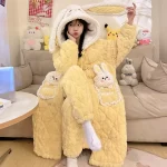 Long winter velvet three-layer quilted cute nightgown for women