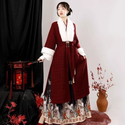 Looking for frost and snow original creative Hanfu women's improved new Chinese style Chinese style vest skirt coat woolen coat autumn and winter suit