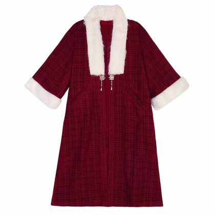 أبحث عن الصقيع والثلج الأصلي الإبداعية Hanfu المرأة تحسين النمط الصيني الجديد سترة تنورة معطف الصوف معطف الخريف والشتاء دعوى