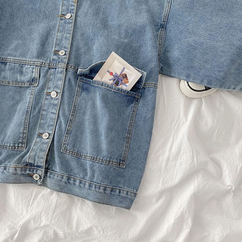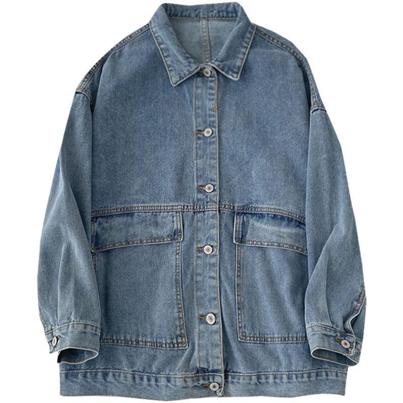 Loose All-match Denim Short Jacket 2024 New Autumn Women's Fashion Elegant Lapel Long Sleeve Hong Kong Style Top