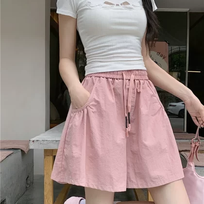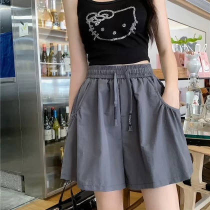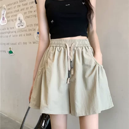 Loose and quick-drying drawstring high-waisted shorts for petite women
