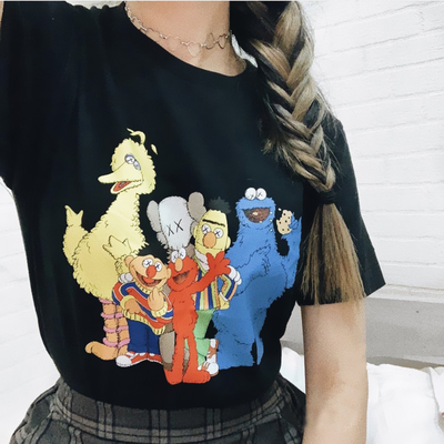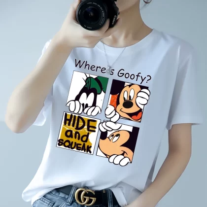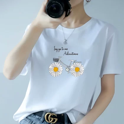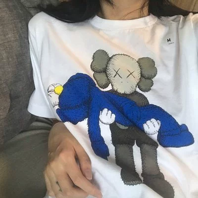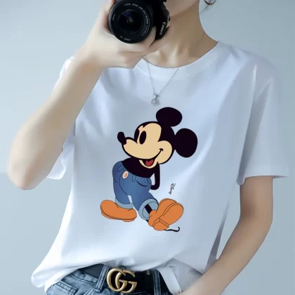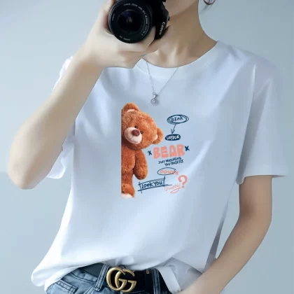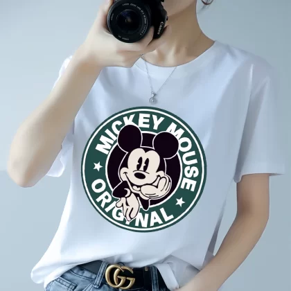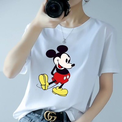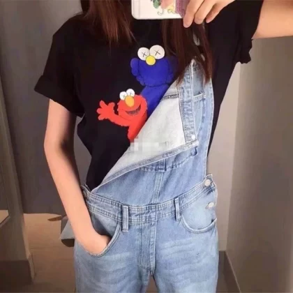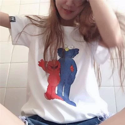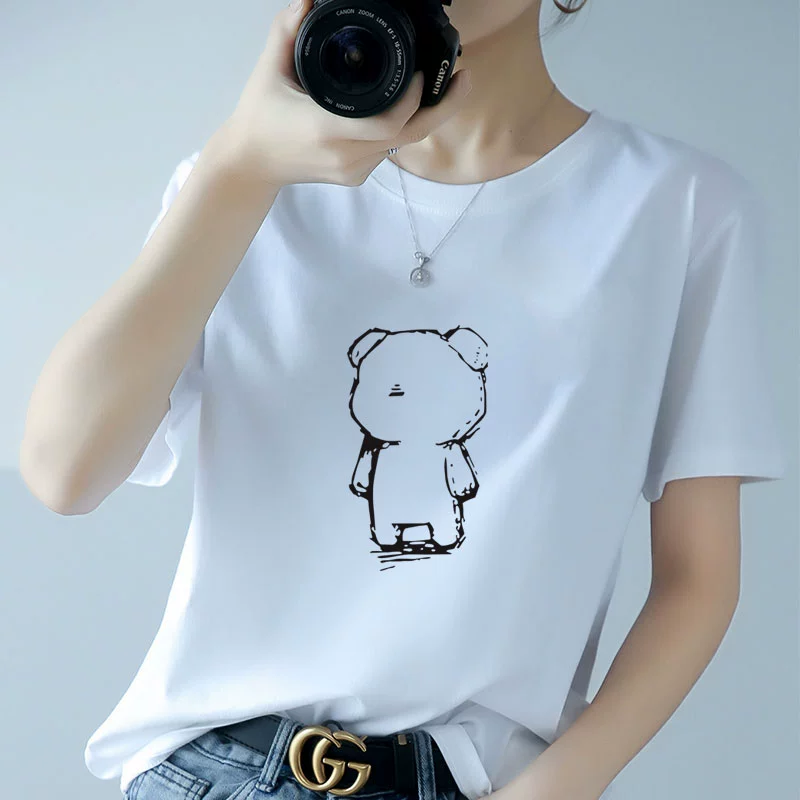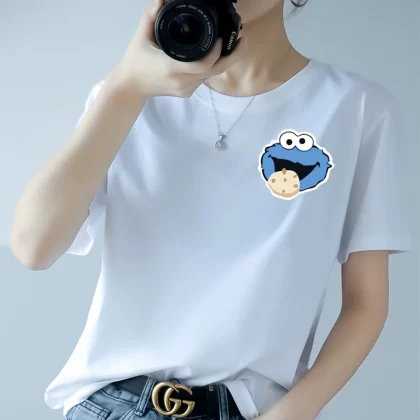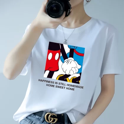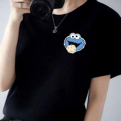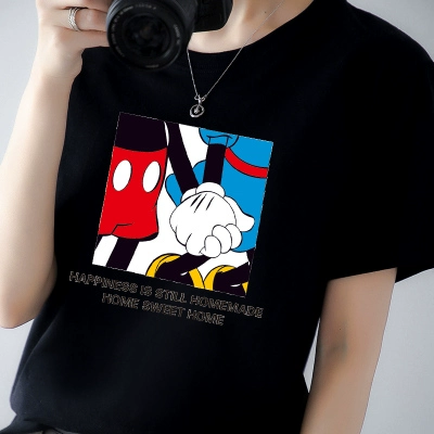 نمط الكرتون فضفاضة 100 ٪ زوجين جولة الأكمام قصيرة