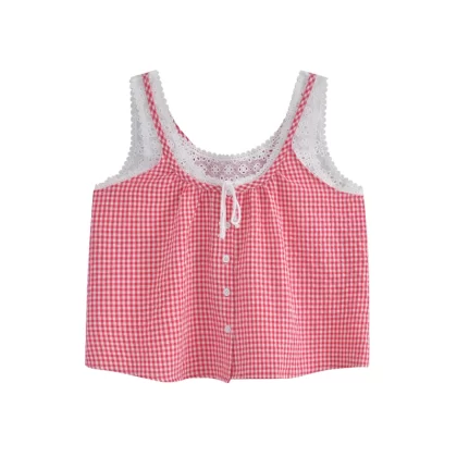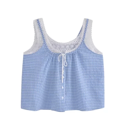 | nameOriginal | Loose lace paneled lace-up sleeveless tank top |