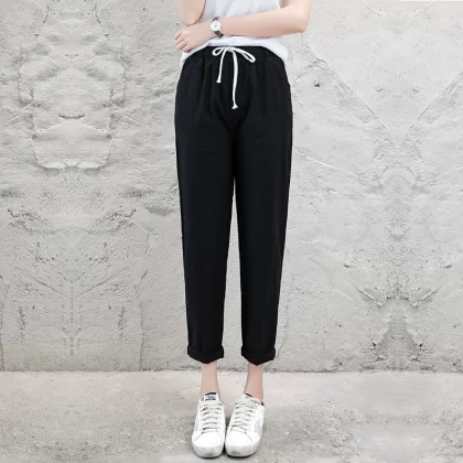| nameOriginal | Loose large size thin solid color cropped harem cotton and linen pants |