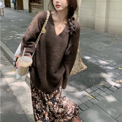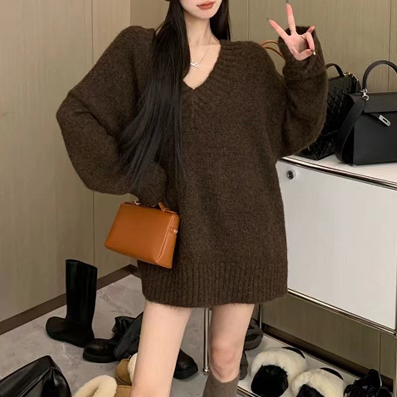 | nameOriginal | Loose lazy style V-neck pullover Women's Mid-length 2023 autumn and winter new fashion sweater long sleeve top |