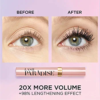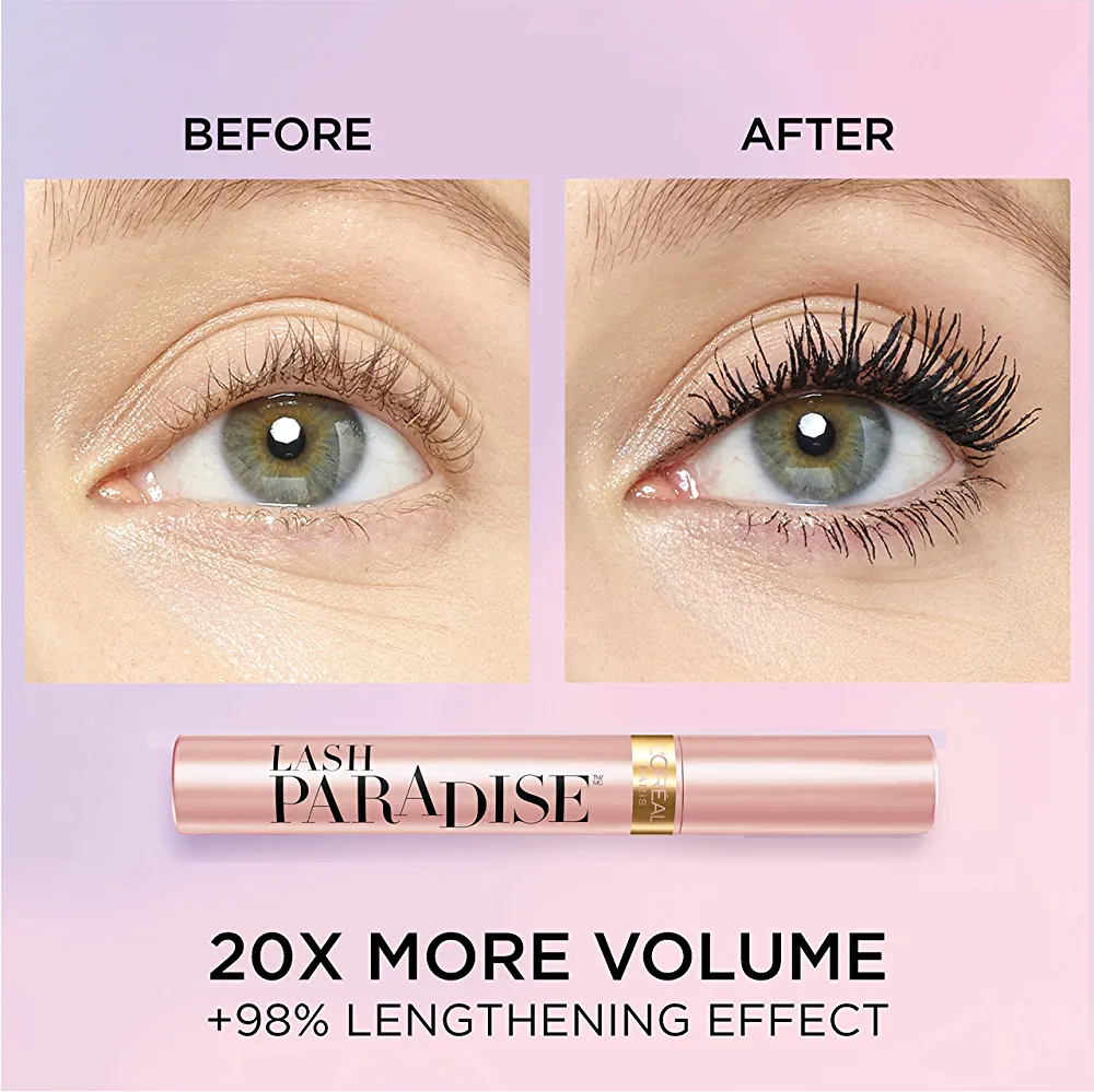 | nameOriginal | L'Oreal Paris Voluminous Makeup Lash Paradise Mascara, Voluptuous Volume, Intense Length, Feathery Soft Full Lashes, No Flaking, No Smudging, No Clumping, Blackest Black, 1 Count, Packaging May Vary |