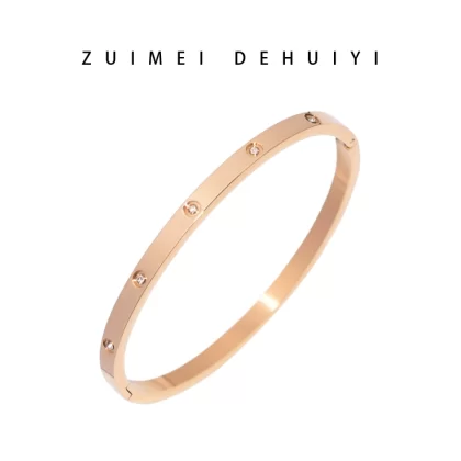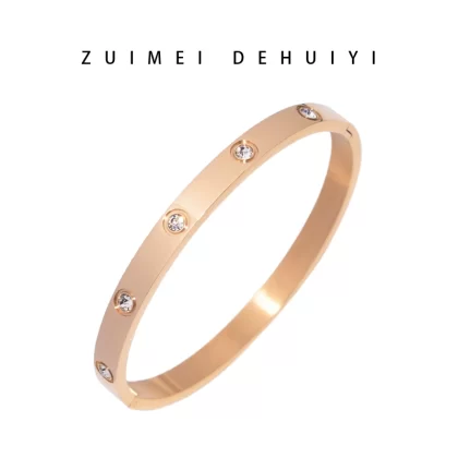LOVE rose gold couple full diamond titanium steel personalized bracelet