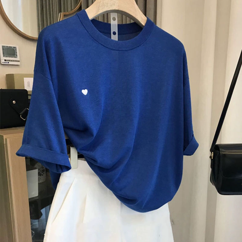 تيشيرت نسائي بأكمام قصيرة Love تطريز ماركة أوروبية