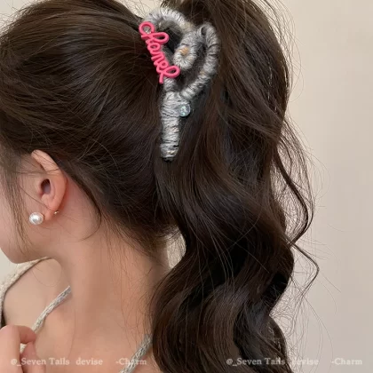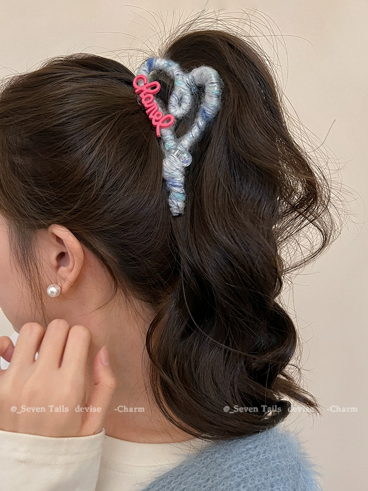 Love Signal ~ Wool Hair Clip for Women 2024 New Style Autumn and Winter Simple Love Clip Large Shark Clip for the Back of the Head
