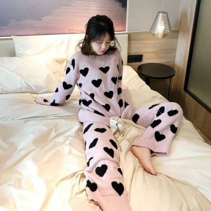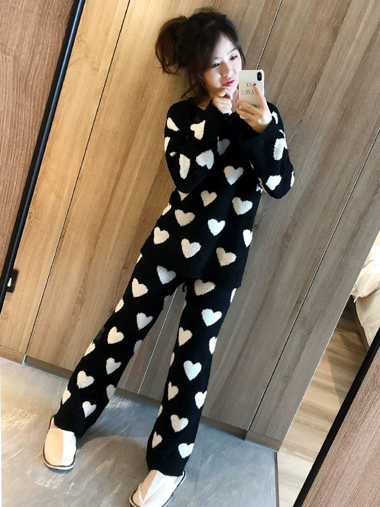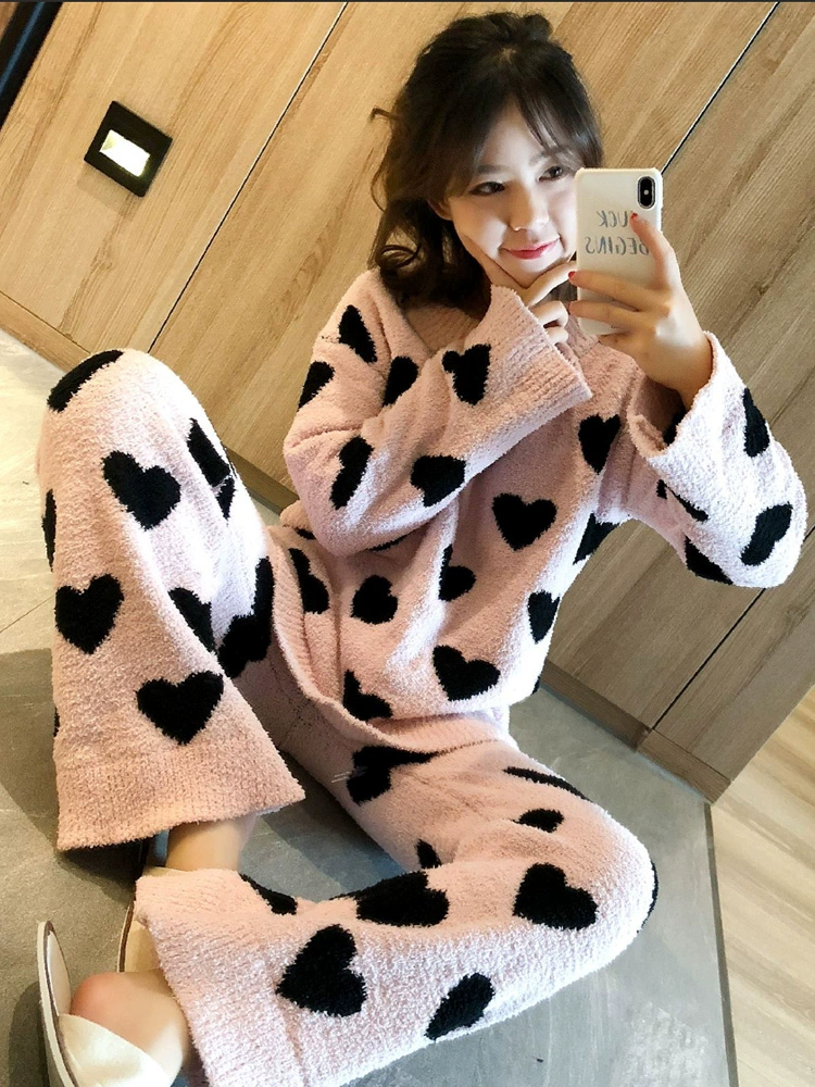 | nameOriginal | Love soft pajamas women's autumn and winter suit long-sleeved velvet thickened warm coral velvet cute student home clothes |