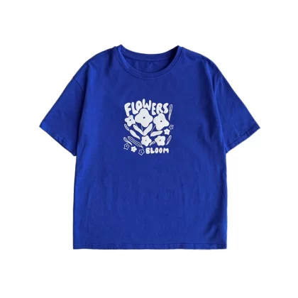 تي شيرت Loyal dog Hachi فضفاض أزرق مطبوع بأكمام قصيرة