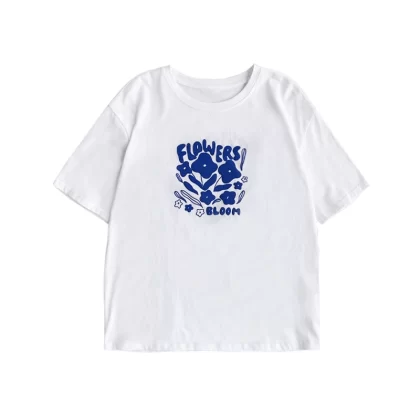 Loyal dog Hachi loose blue printed short-sleeved T-shirt