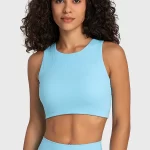 سترة رياضية نسائية من نفس النمط بياقة عالية ومضادة للتعرض ومطاطة ومضلعة وقابلة للتنفس وظهر جميل على شكل حرف I، سترة يوجا للياقة البدنية