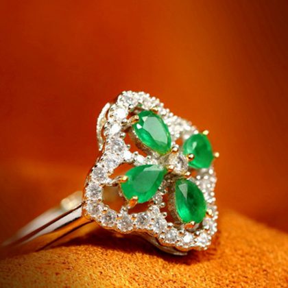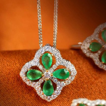 Lucky Four Leaf Grass Emerald Pendant Earrings Ring Set Necklace Elegant Green Tourmaline Color Treasure Jewelry