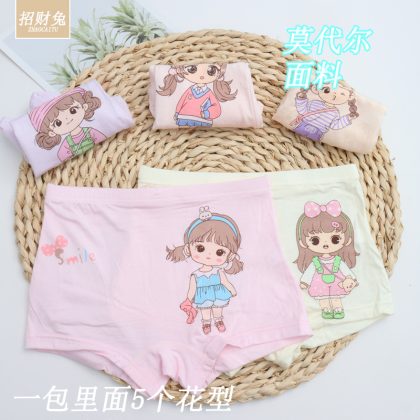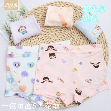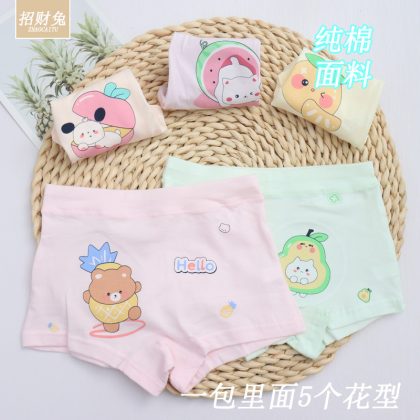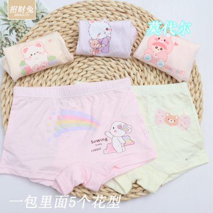 Lucky Rabbit Modal Cotton Children's Underwear Women's Middle and Big Children's Boxer Little Girl's Bacteriostatic Underwear 2-12 Years Old Summer