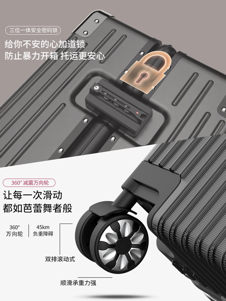 | nameOriginal | Luggage Case Women's New 20-inch Durable Large Capacity Travel Boarding Trolley Case Password Case Male 24 Students |