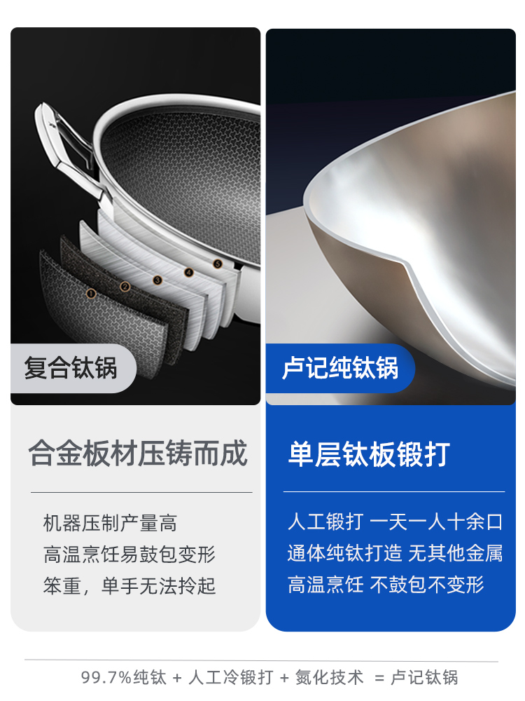 Luji Titanium Non-stick Pan Wok for Household Gas Stove Non-coated Non-stick Wok Pure Titanium Wok