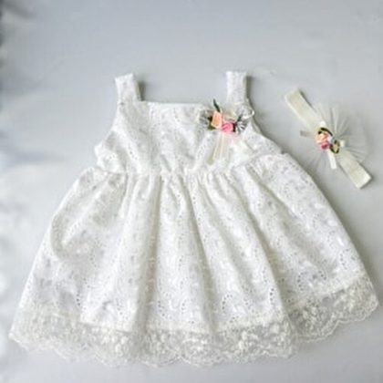 Baby girl dress with white floral detail Lined inside, zipper with flower headband gift on the side, it is recommended to wash it in accordance with the washing instructions. You can choose the appropriate size using the size chart.