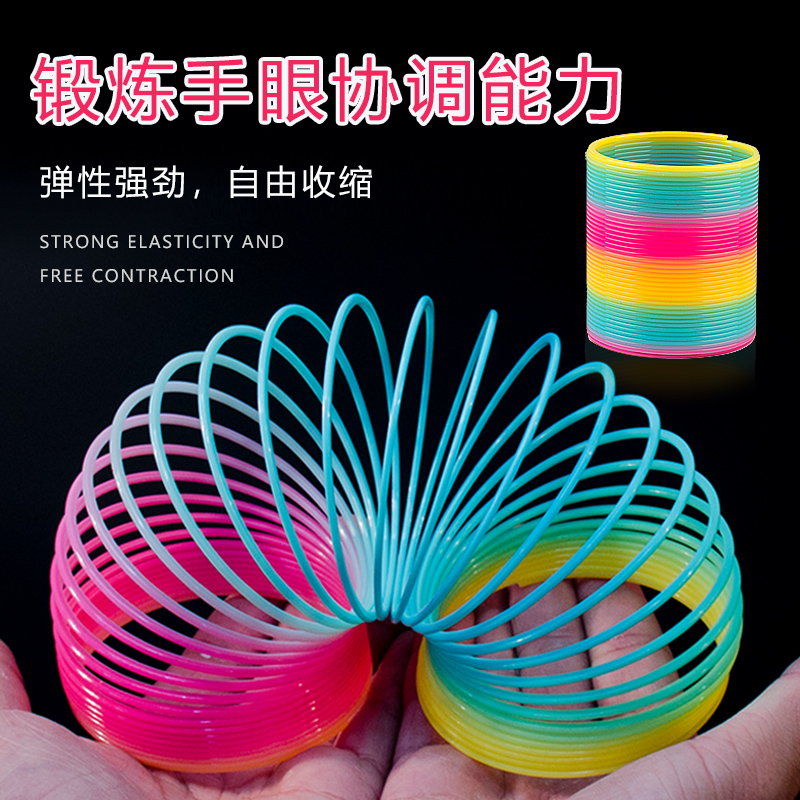 | nameOriginal | Luminous Children's Magic Rainbow Circles Large Boys' and Girls' Spring Circles Pentagonal Heart Lobe Elastic Toys |
