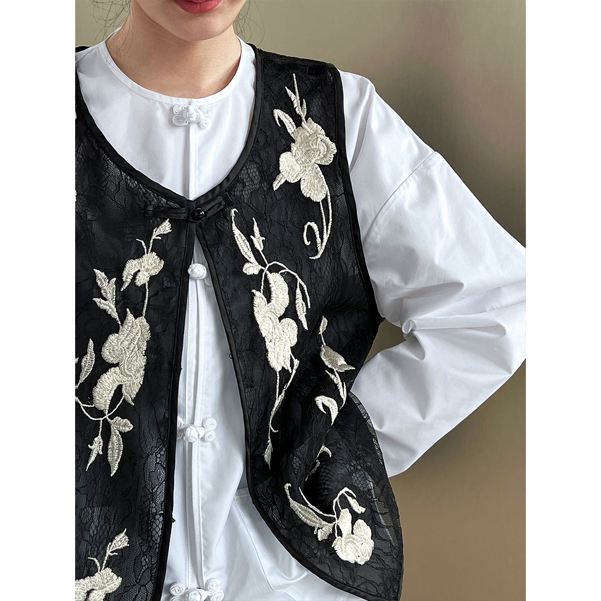 Luxi high-end feeling ~ spring and summer 2024 new national style new Chinese style hidden buckle flower embroidery vest cardigan women's 2760