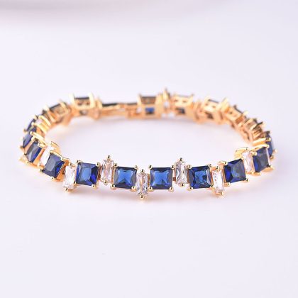 Luxuriously set emerald, red and blue square diamond colored gemstones