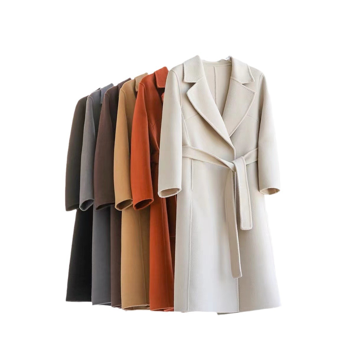 Luxury brand D factory out! Australian pure wool handmade double-sided tweed classic belt long woolen coat women's new