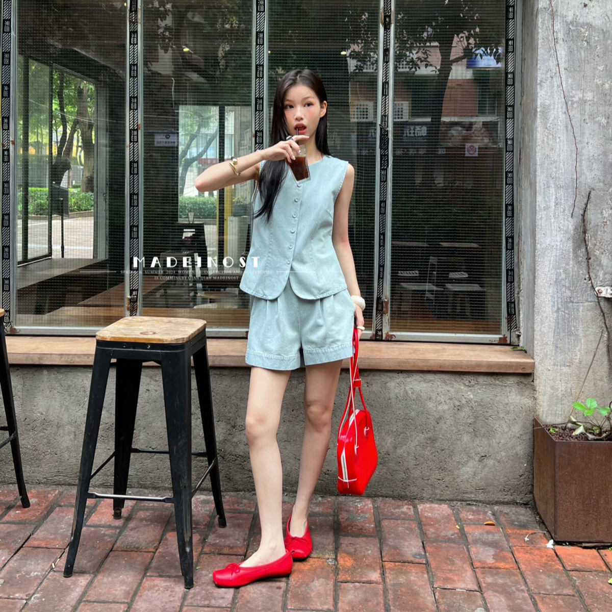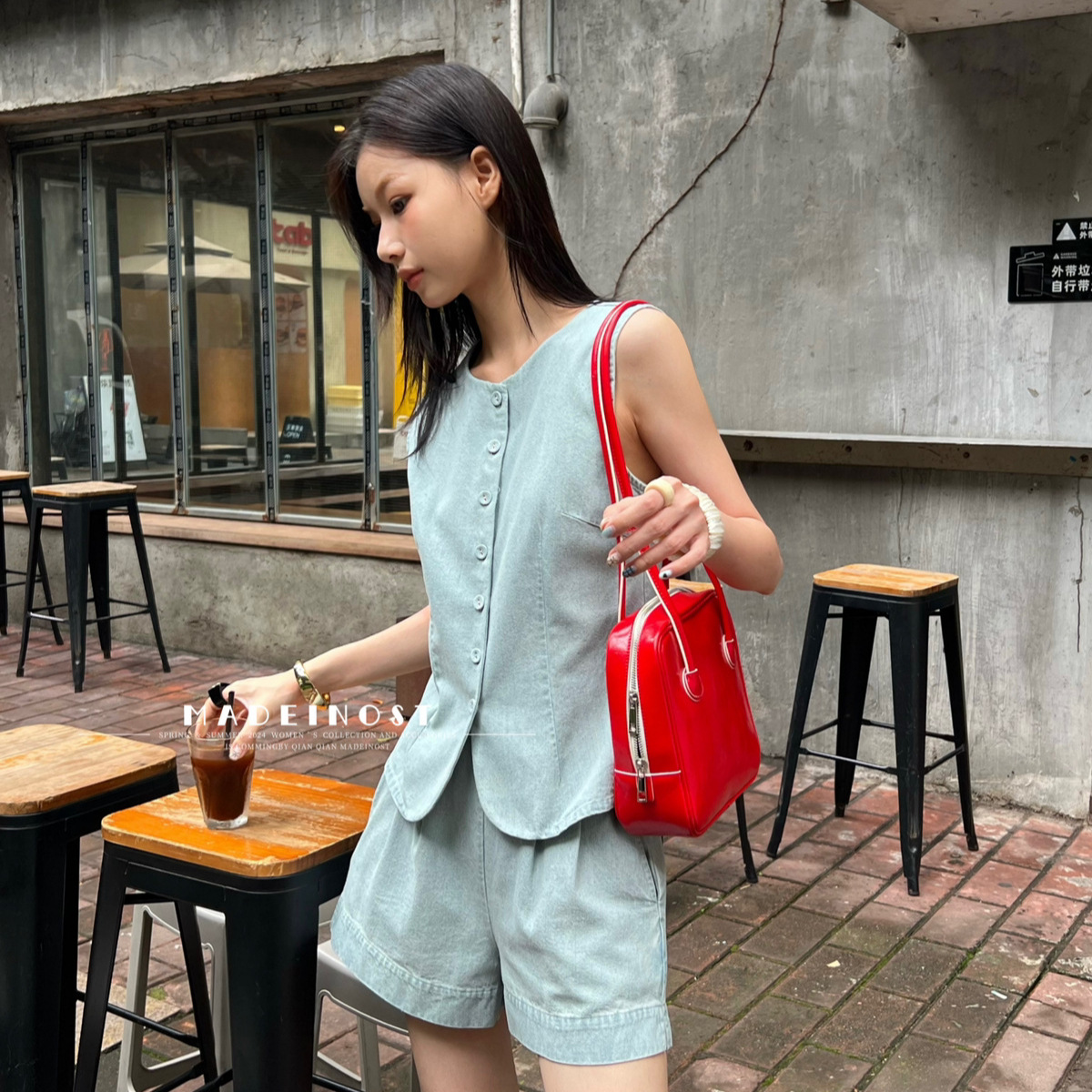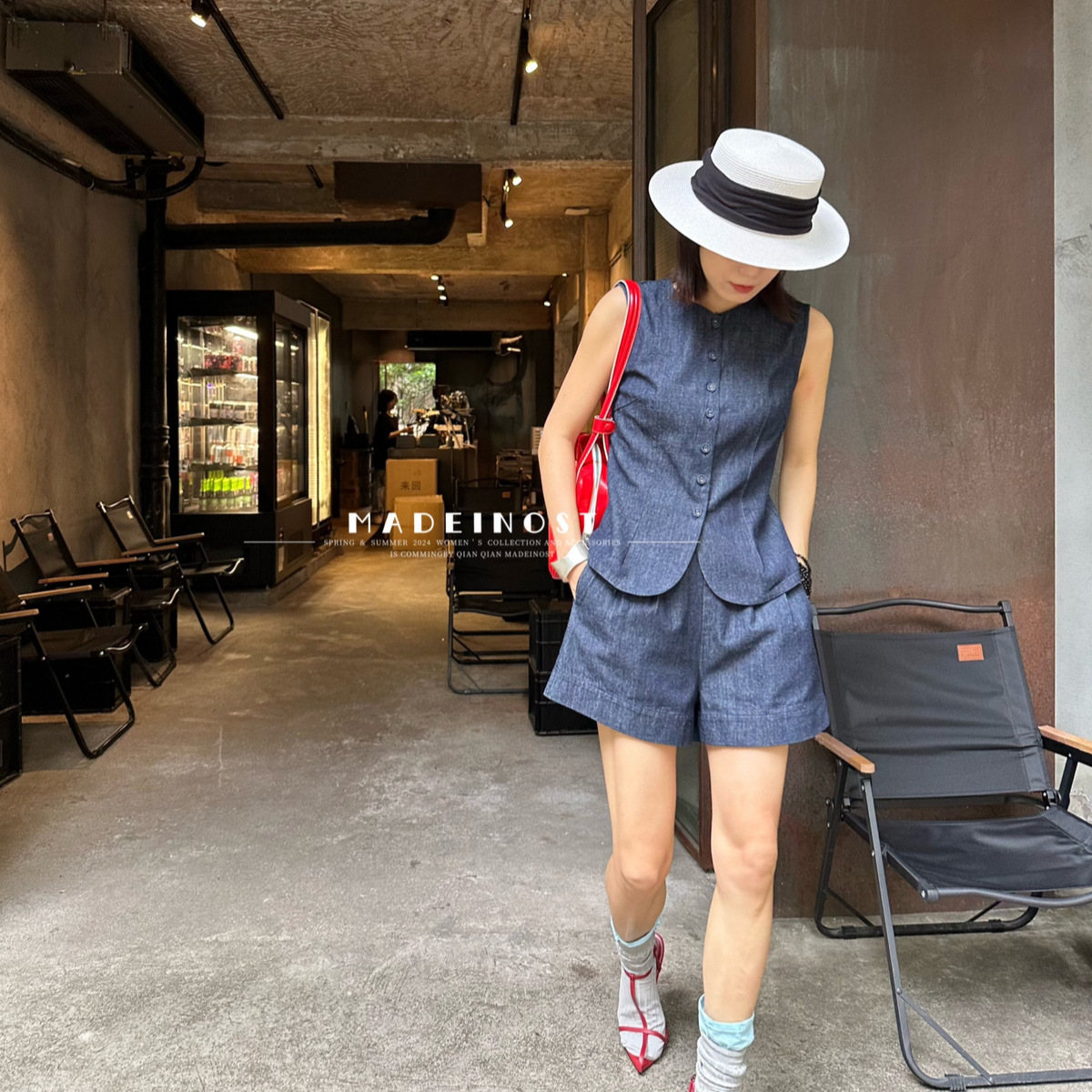| nameOriginal | MADEINOST Summer Minimalist Blogger Pure Wash Water Denim Vest Two-Piece suit |