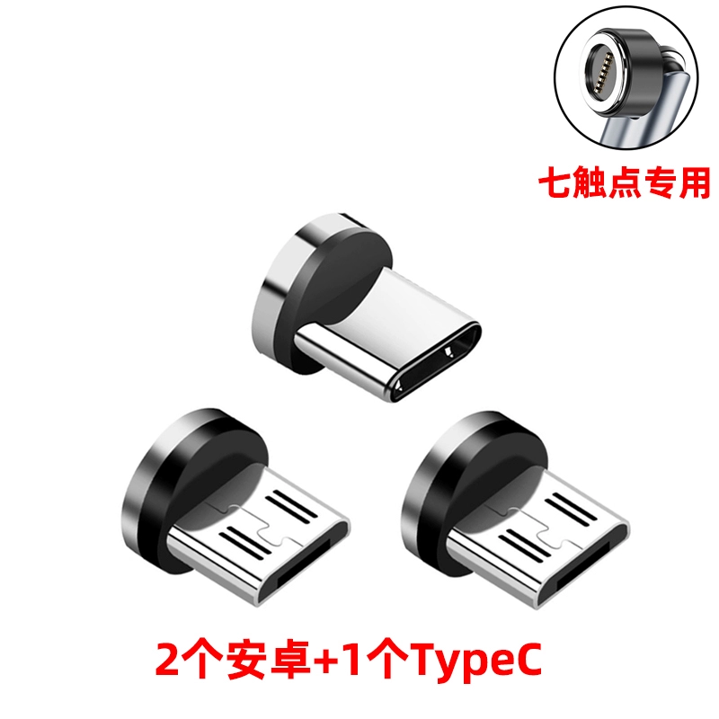 Magnetic data cable magnetic suction head suitable for Android typec Apple Huawei Xiaomi vivoOPPO strong magnetic car mobile phone fast charging seven-contact spiral magnetic suction head Android small mouth TypeC large mouth