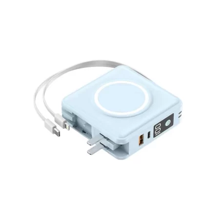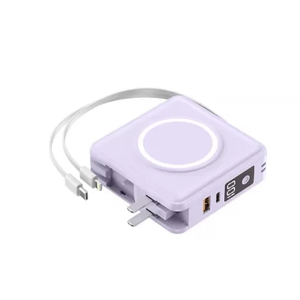 | nameOriginal | Magnetic wireless power bank with built-in cord, three-in-one plug, mobile power supply, portable, suitable for Apple and Huawei fast charging PD |