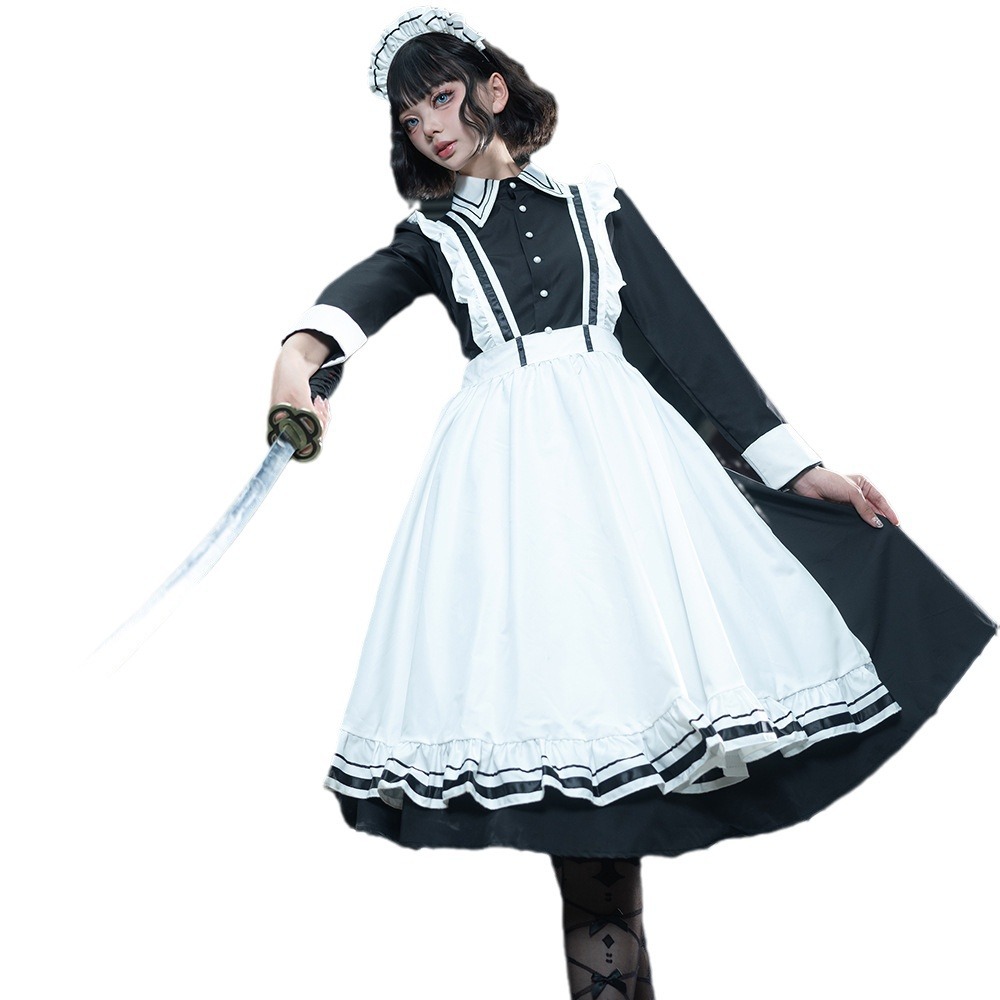 | nameOriginal | Maid Long Dress Lolita Long Sleeve Cos Cyber Maid Long Halloween Costume European and American Maid Uniform |