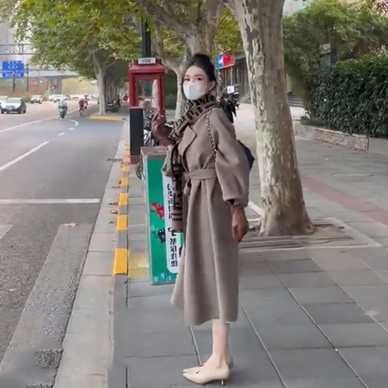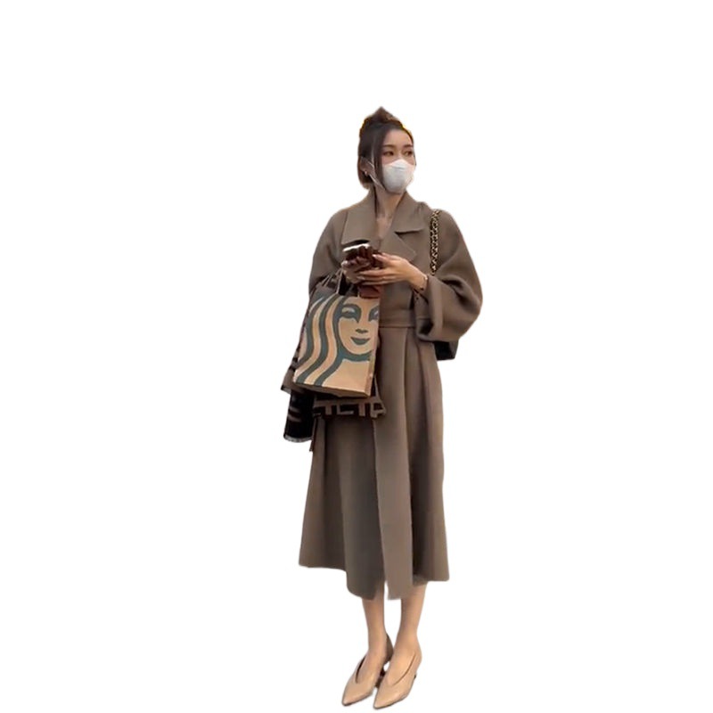 Maillard Double-sided Fleece Wool Coat Women's Autumn and Winter Mid-length Korean-style Loose Lazy Woolen Coat Trendy for Petite