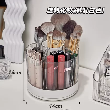 | nameOriginal | Makeup brush storage tube rotating compartment dressing table desktop multi-functional storage rack eyebrow pencil lipstick eye shadow powder brush |
