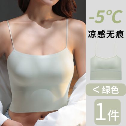 Mango Cup One-piece Latex Cup Seamless Ice Silk Fixed Cup Sling Women's Long Tube Top with Chest Pad Women's Vest