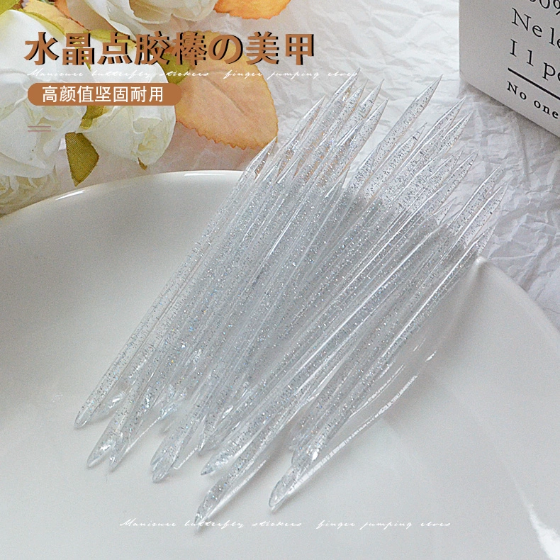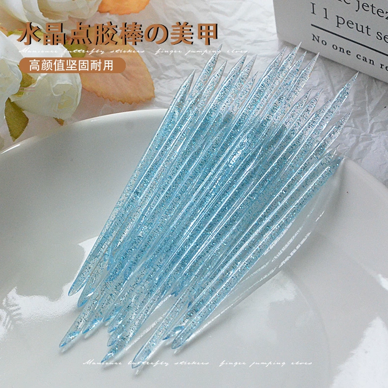 Manicure transparent crystal dot drill glue stick embossing orange wood stick dot pen double-headed dead skin push tool 50 pieces