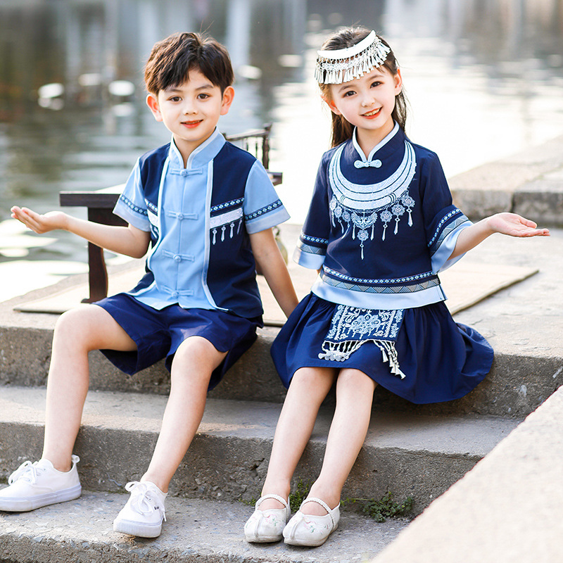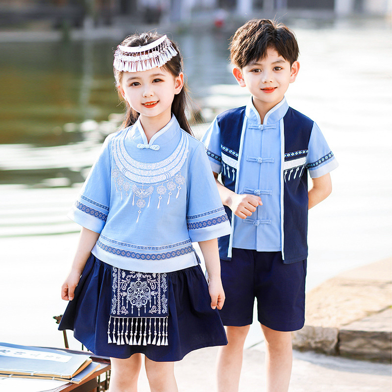 March 3 Guangxi Zhuang Nationality Children's National Costume Chinese Style Class Costume Summer Primary School Students Chorus Performance Costume Summer Costume