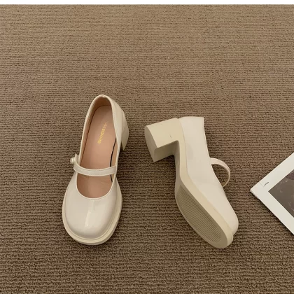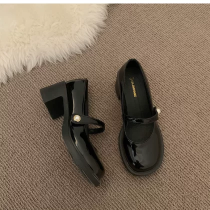 | nameOriginal | Mary Jane round toe thick heel retro black leather shoes |