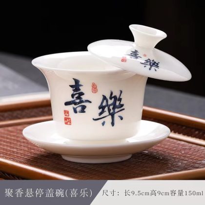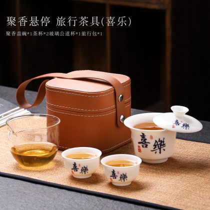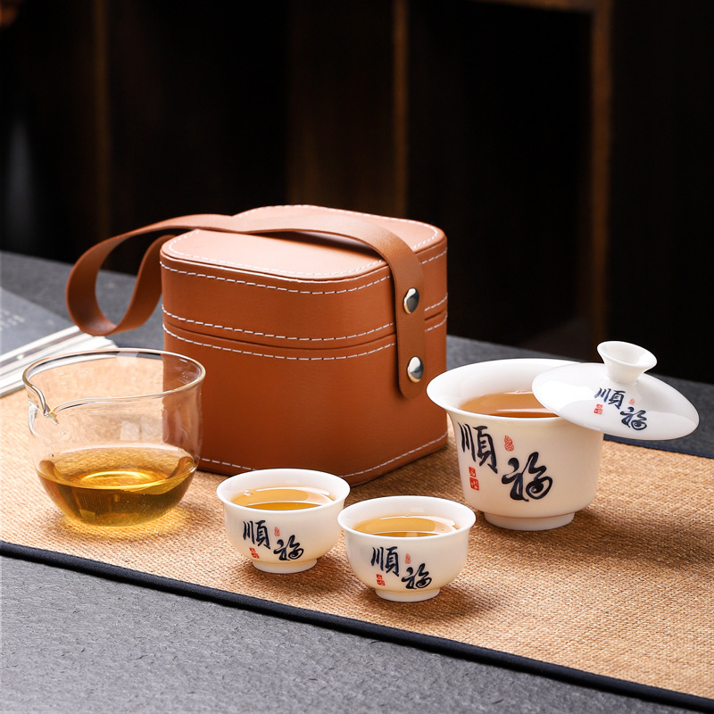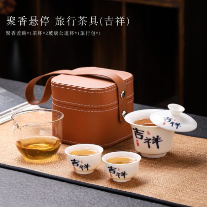 Mat fat jade hovering three-cap bowl portable travel kung fu tea set quick cup one pot two cups glass male cup