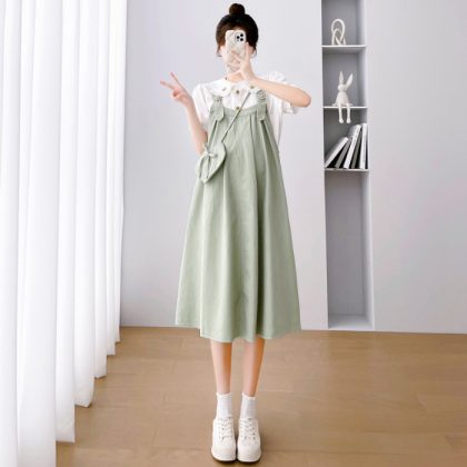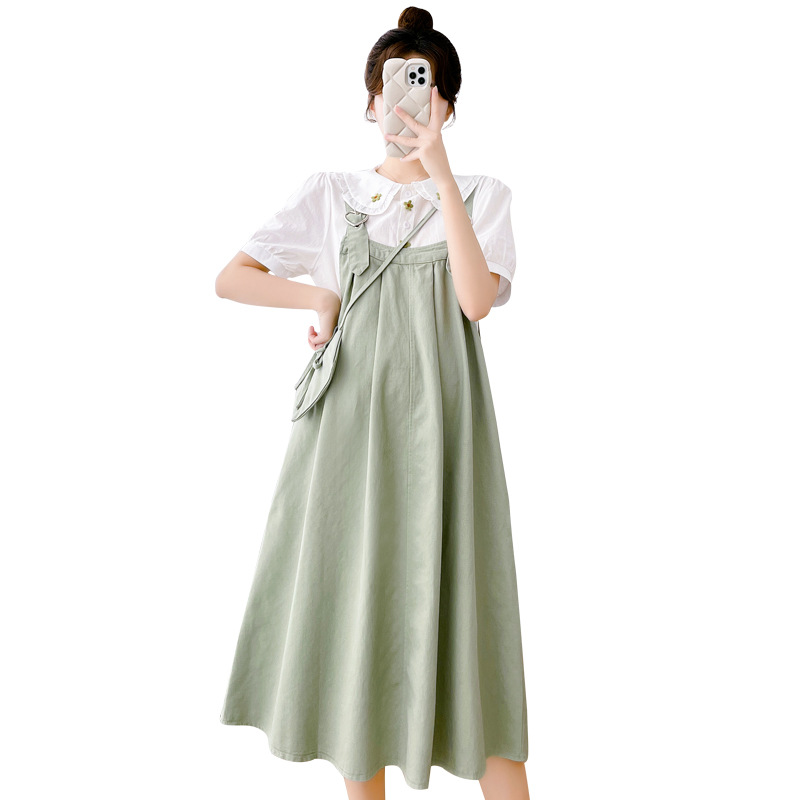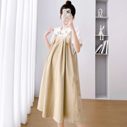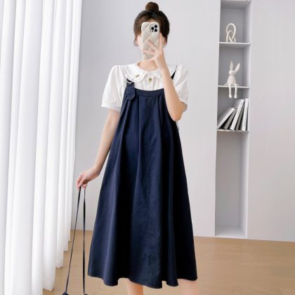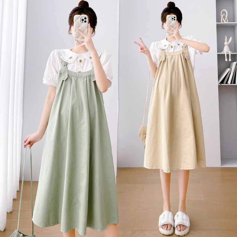 | nameOriginal | Maternity 2024 Summer New Korean-style Doll Collar Shirt Cotton Cloth Slip Skirt Two-piece Maternity Dress |