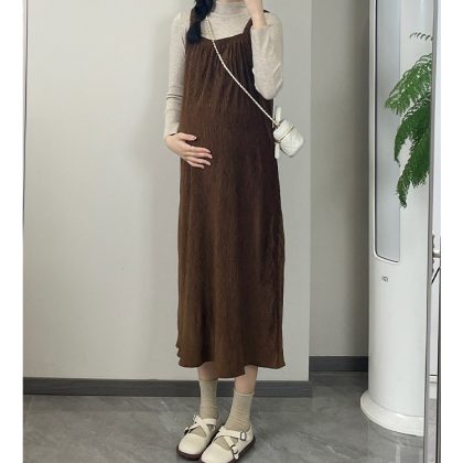 | nameOriginal | Maternity clothes autumn and winter New Fashionable velvet sling dress long elegant two-piece set autumn suit |