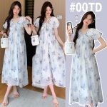 فستان حمل لقطة حقيقية 2024 فستان حمل جديد مقاس كبير من الشيفون موضة ارتداء النساء الحوامل فستان يغطي البطن نمط أجنبي